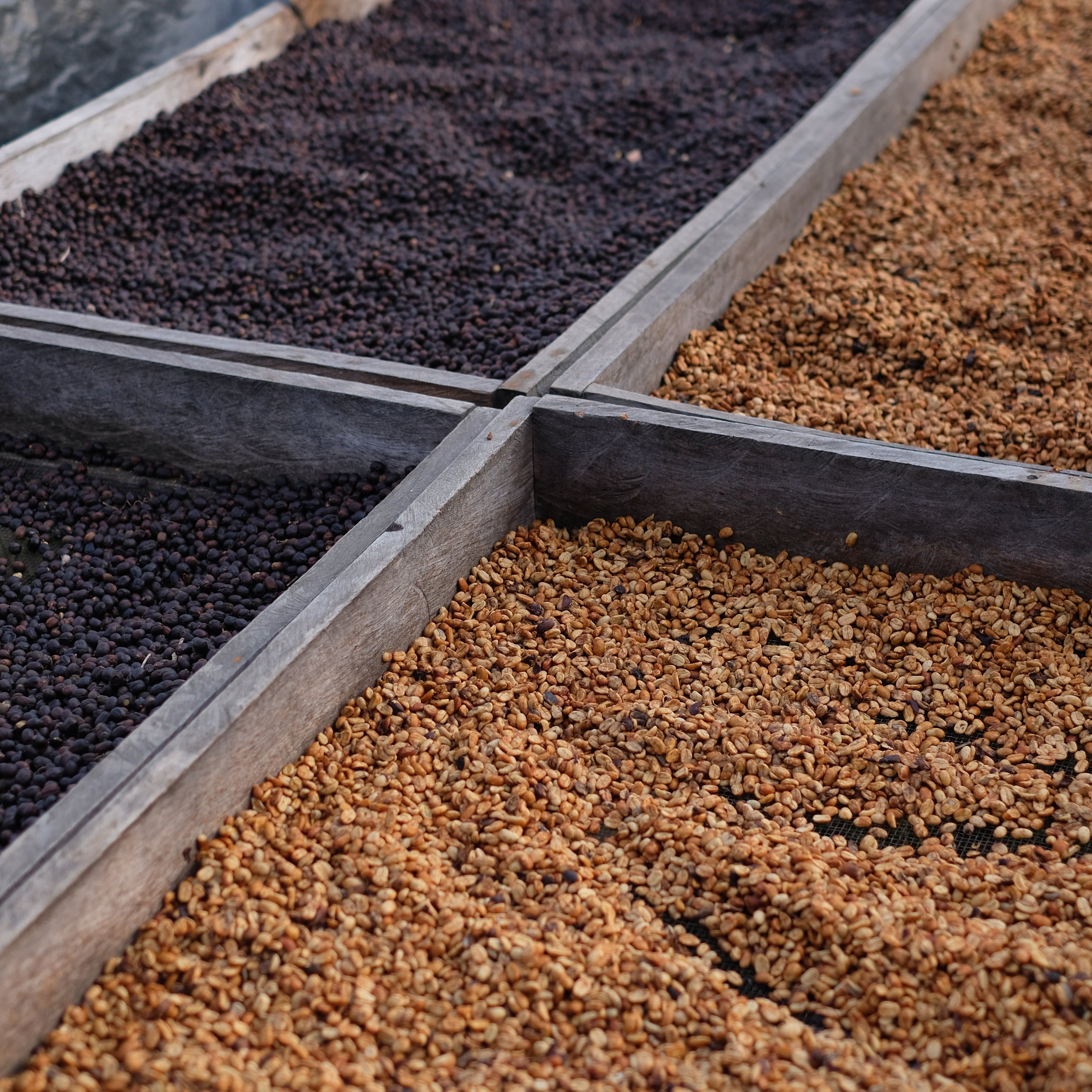 Unser Bourbon Elite-Lot wurde gewaschen. Nach der Ernte wurden die Kirschen mit Wasser entpulpt, um die Haut und den Schleim zu entfernen. Die gewaschenen Bohnen wurden dann langsam auf den typischen Hochbeeten getrocknet, die den benachbarten Vulkan überblicken.