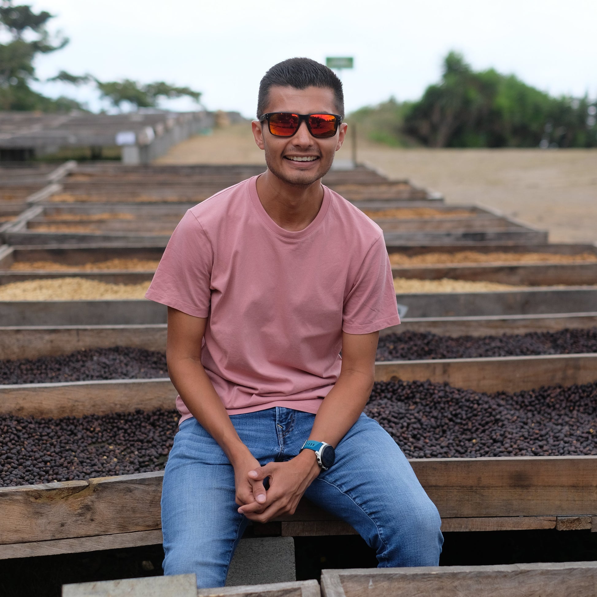 Auf 1400 Metern über dem Meeresspiegel liegt Los Pirineos an vulkanischen Hängen inmitten eines üppigen Waldes. Das Mikroklima rund um den Vulkan sorgt für sonnige Tage und kühle Brisen, die ideal für den Anbau und die Trocknung sind. Im Trocknungsbereich der Farm sind Hochbeete zwischen zwei Gipfeln aufgestellt, die den Wind gleichmäßig über den trocknenden Kaffee leiten. Mit zwölf Stunden Sonne pro Tag ist das die perfekte Umgebung für die Honey- und Natural-Verarbeitung.