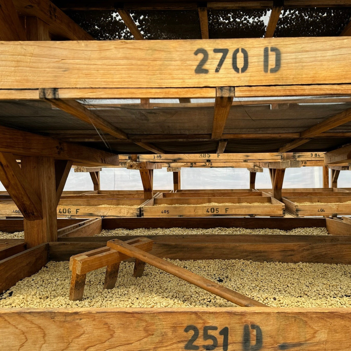 For this lot, Ricardo used a traditional washed method. The freshly harvested cherries are first pulped to remove the outer skin, then fermented. After washing, the beans are dried on African beds inside a specially designed greenhouse. Our lot took around 21 days to dry, a slow process encouraging balance and complexity.